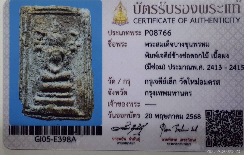 พระสมเด็จบางขุนพรหม พิมพ์ใหญ่ เนื้อผง ปี2413