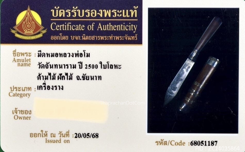 มีดหมอหลวงพ่อโม วัดจันทนาราม จ.ชัยนาท ปี2500