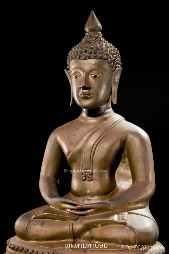 พระพุทธรูปรัชกาลปางสมาธิเพ็ชร เกศบัวตูมหล่อหนาบัวเด้งดินเต็ม