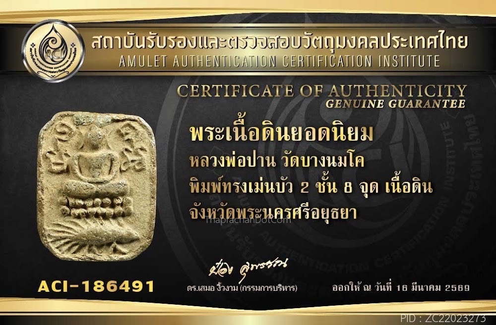 หลวงพ่อปาน ทรงเม่นบัว 2 ชั้น 8 จุด ปี พ.ศ.2460 วัดบางนมโค