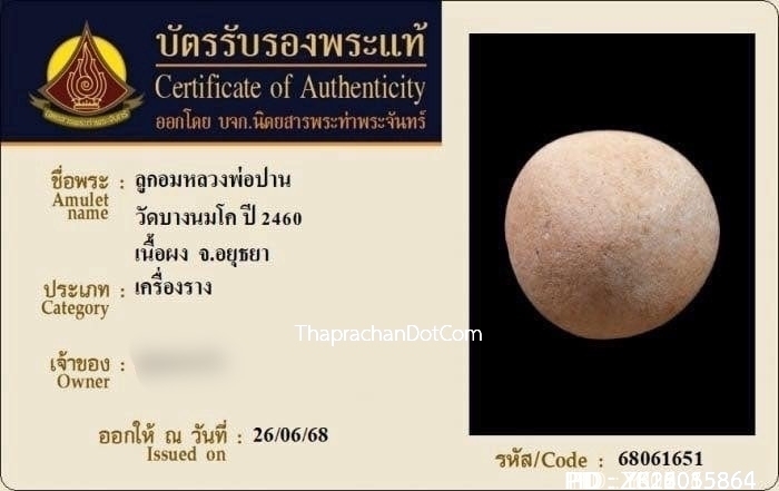ลูกอมพอกครั่งหลวงพ่อทองสุข วัดโตนดหลวง ปี2500