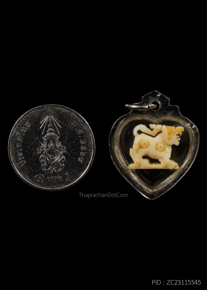 สิงห์ตัวใหญ่งาแกะยกขาตาพลอย ยุคต้น หลวงพ่อหอม วัดชากหมาก