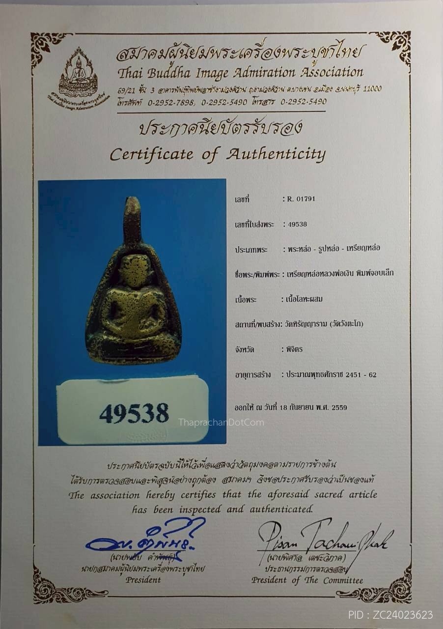 รูปหล่อหลวงพ่อเงิน พิมพ์ขี้ตาสามชาย วัดบางคลาน ปี2462