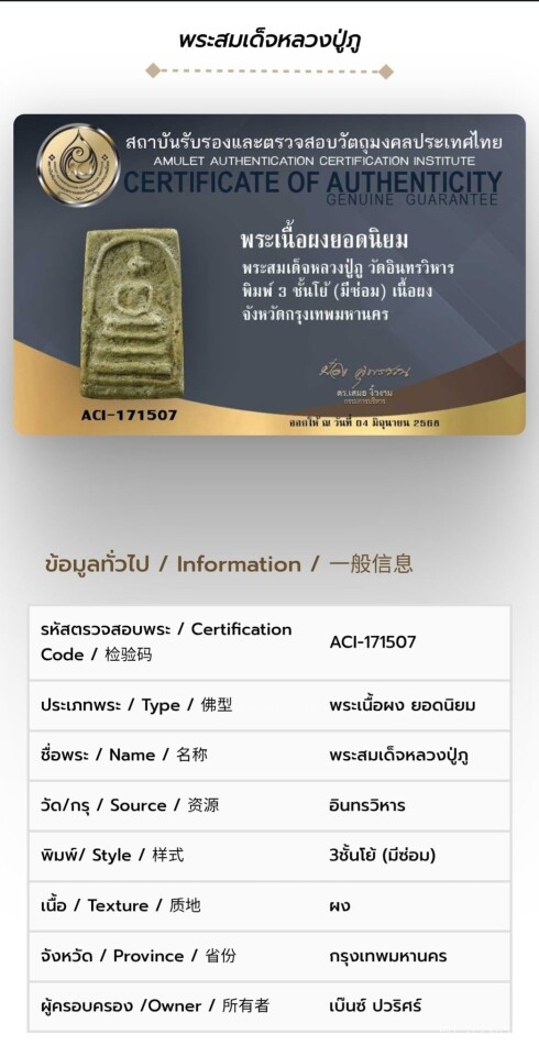 พระสมเด็จ หลวงปู่ภู วัดอินทรวิหาร