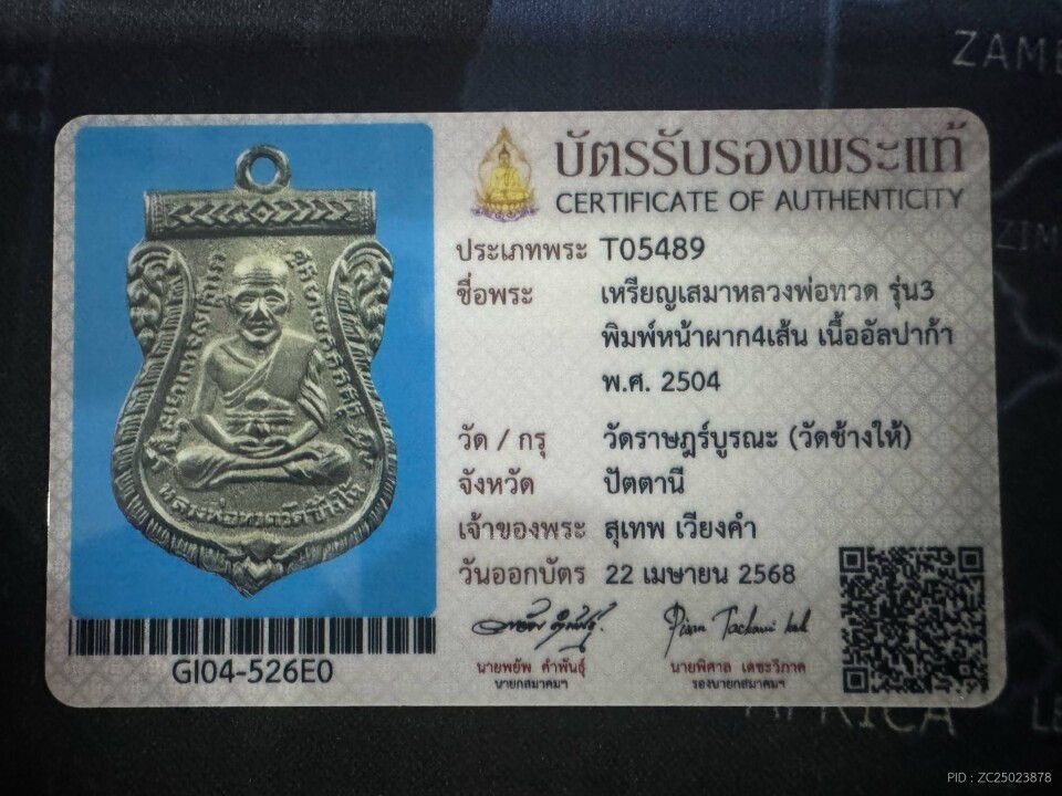 ลพ.ทวด เหรียญเศียรโต รุ่นแรก ปี 2500 พร้อมบัตรรับรองของสมาคม