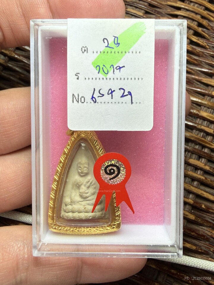 หลวงปู่ศุข พิมพ์ข้างยันต์ ฐานบัวฟันปลา +ตลับทองปิดหลัง 12.5G