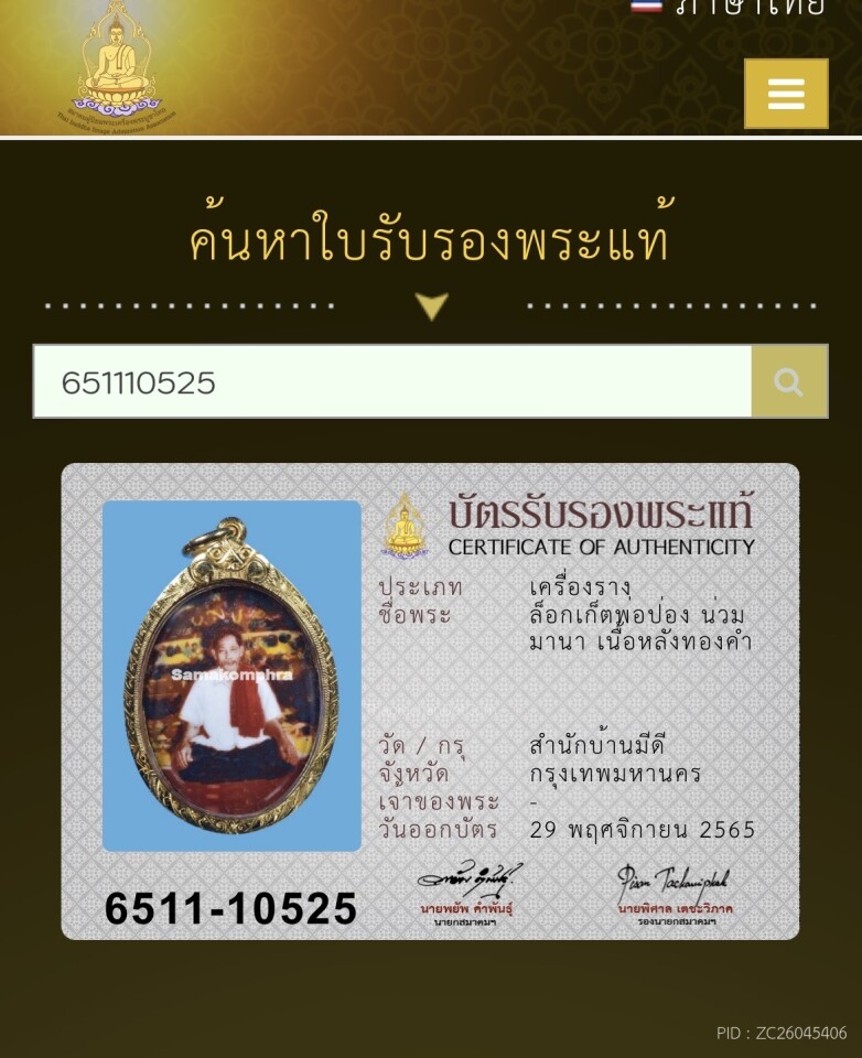 ล็อกเก็ตพ่อป่อง น่วมมานา เนื้อหลังทองคำ สำนักบ้านมีดี