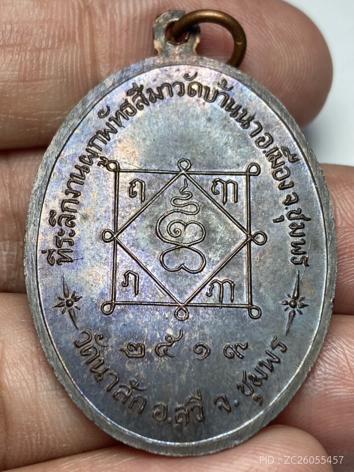 พระขุนเเผนหลังพระปิดตา หลวงปู่เปียก วัดนาสร้าง ปี 2482