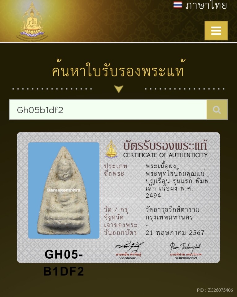 หลวงพ่อปาน พิมพ์ทรงครุฑโบราณ เนื้อดินเผา พ.ศ. 2451