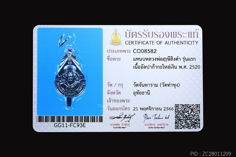พระพุทธชินราชหลวงพ่อเกิด วัดทัพหลวงปี2482นครปฐม+บัตร