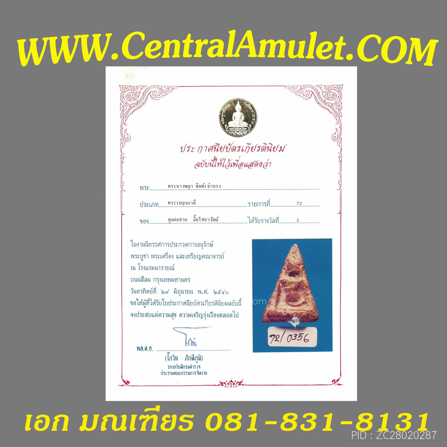 นางพญาพิษณุโลก พิมพ์เทวดา (แชมป์) + ตลับเพชร
