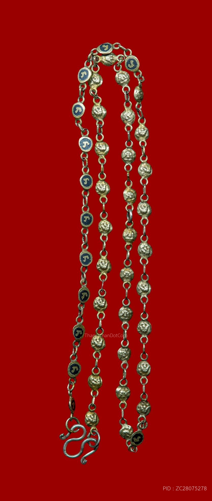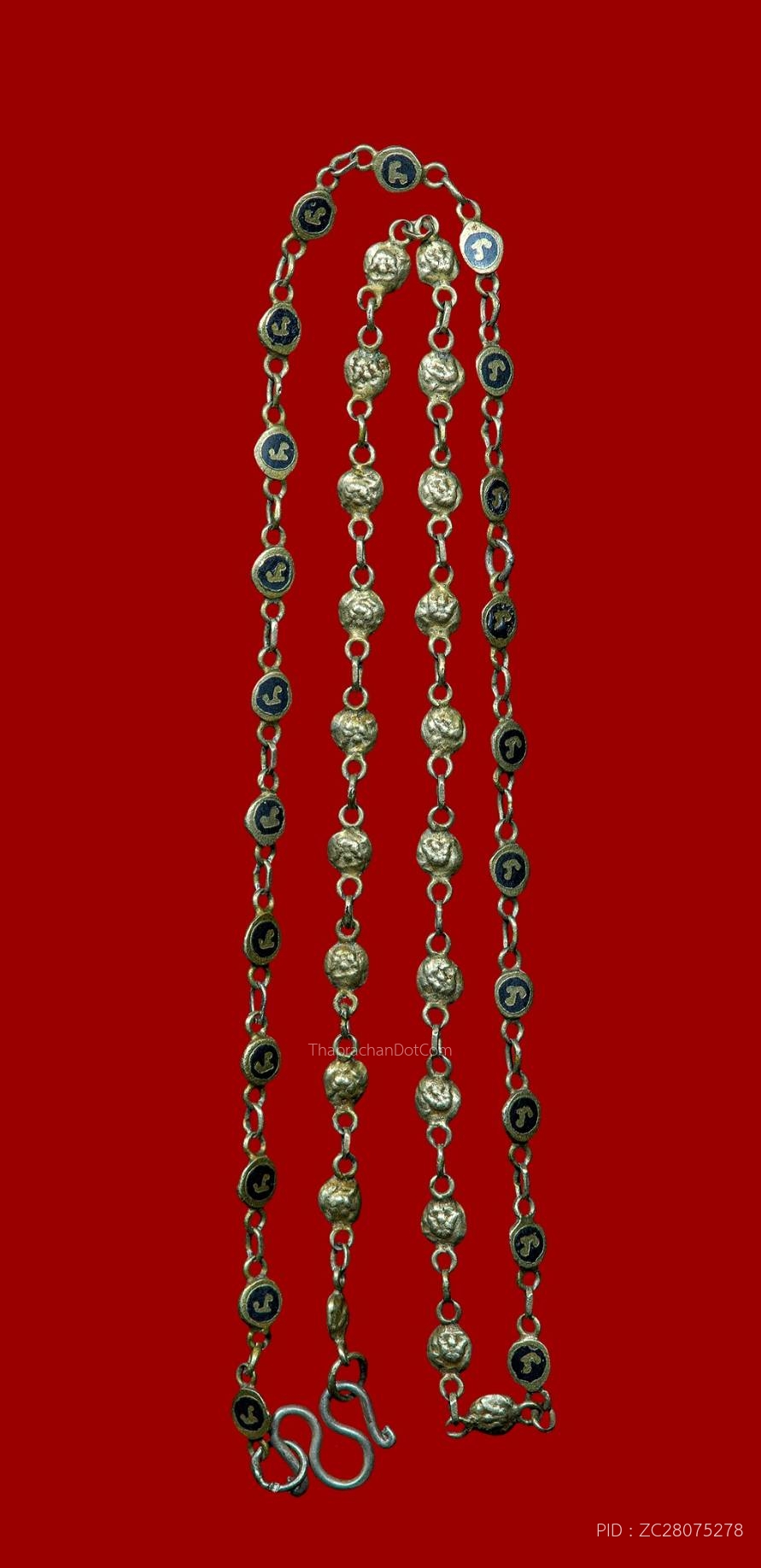 สร้อยนะโมพ่อท่านคล้าย เนื้อเงินลงถม ความยาว 17 นิ้ว