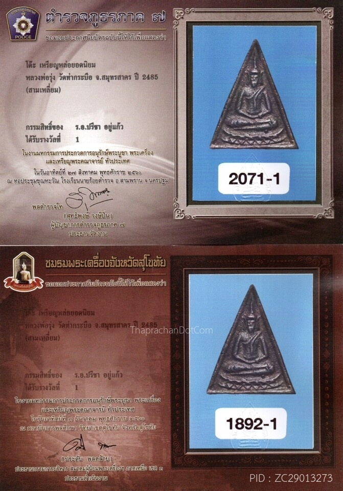 พระนางพญา กรุโรงทอ พิมพ์มีหูนิยม จ.พิษณุโลก