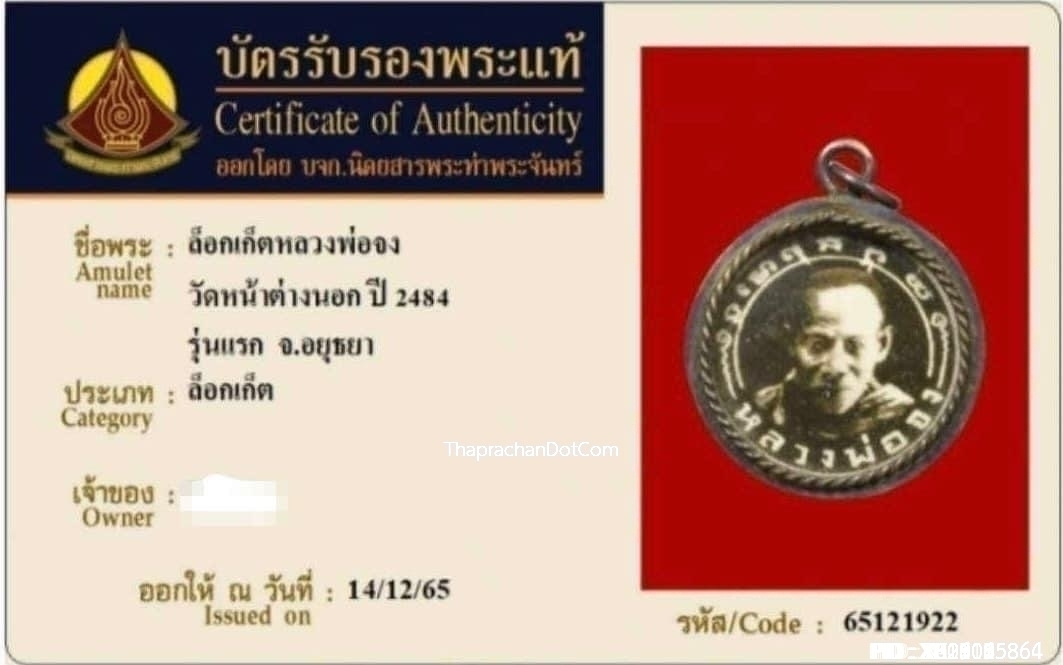 ล็อคเก็ตหลวงพ่อจง วัดหน้าต่างนอก รุ่นแรก ปี2484