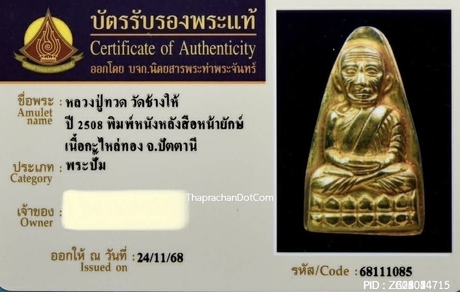 พระปิดตาหลวงพ่อทับ วัดทอง เนื้อเมฆพัตรยันต์ยุ่ง