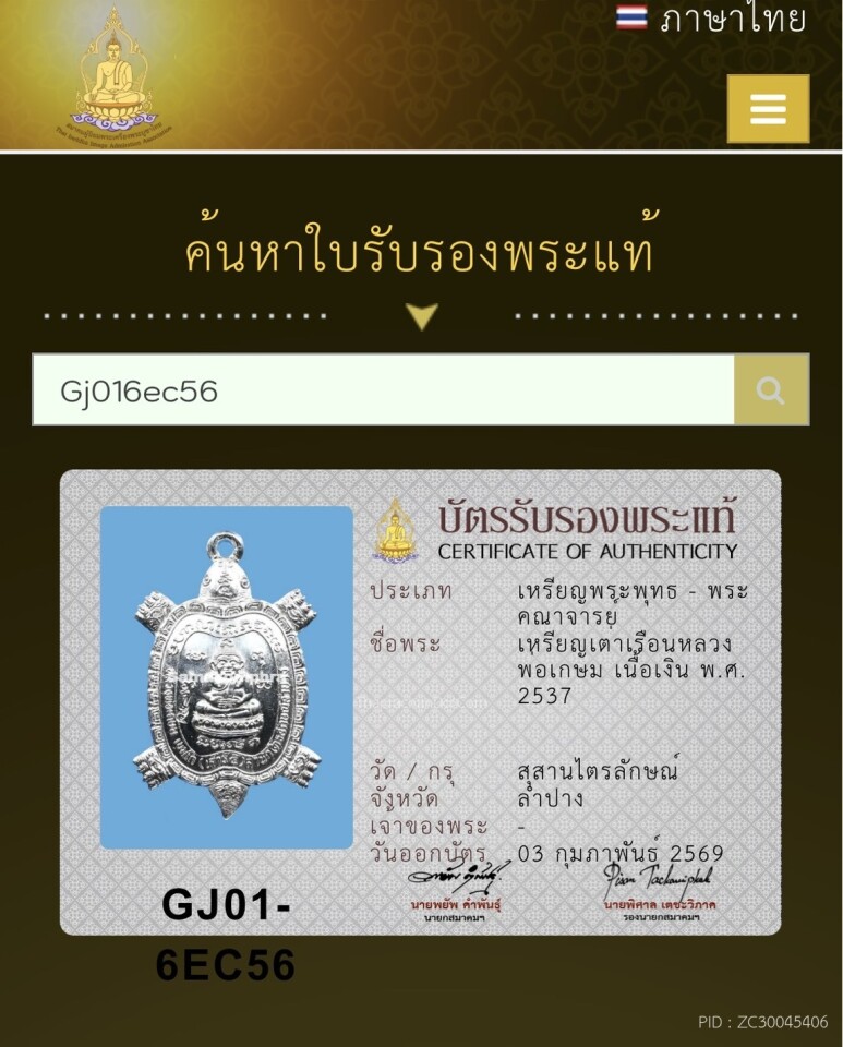 เหรียญเต่าเรือนหลวงพ่อเกษม เนื้อเงิน พ.ศ.2537