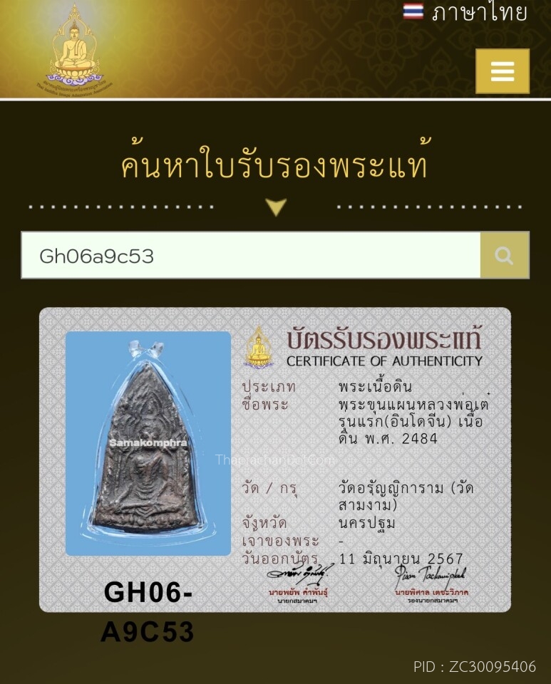 หลวงพ่อปาน พิมพ์ทรงครุฑโบราณ เนื้อดินเผา พ.ศ. 2451