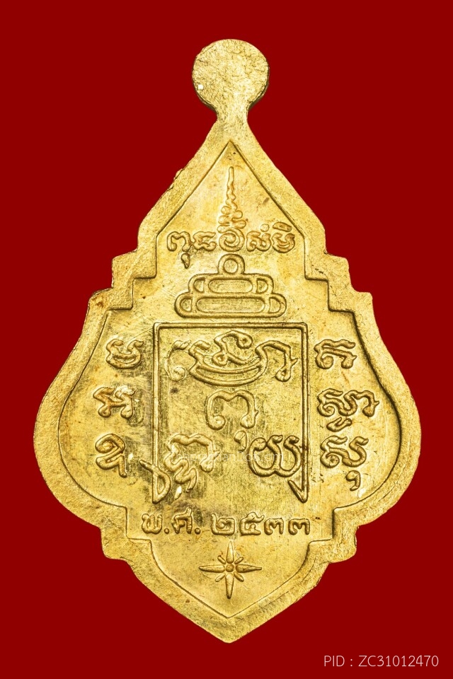 หลวงพ่อรุ่ง วัดท่ากระบือ พิมพ์พัดยศ เนื้อทองแดงกะหลั่ยทอง