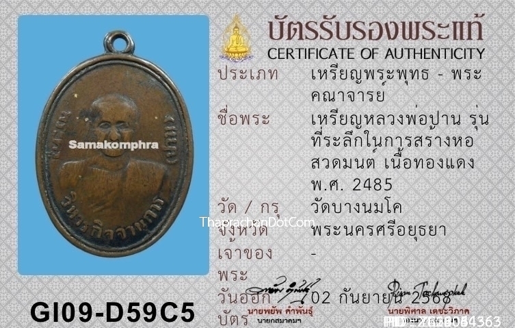 เหรียญหลวงพ่อปาน วัดบางนมโค เนื้อทองแดง ปี2485