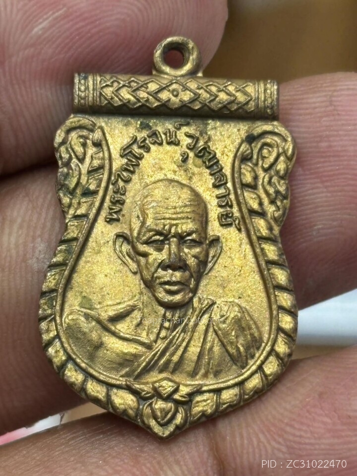 หลวงพ่อรุ่ง วัดท่ากระบือ พิมพ์พัดยศ เนื้อทองแดง กะหลั่ยทอง