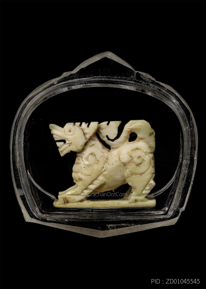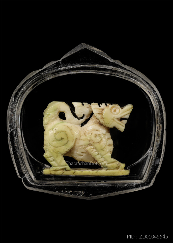 สิงห์ตัวใหญ่งาแกะยกขาตาพลอย ยุคต้น หลวงพ่อหอม วัดชากหมาก