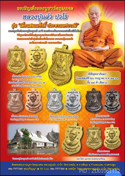 หลวงปู่เรื่อง วัดศรี เมือง รุ่นแรก เนื้ออัลปาก้า จ.นครนายก