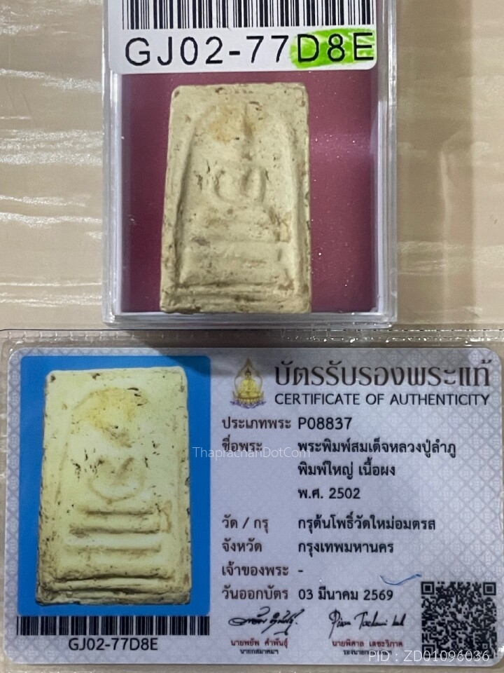 +บัตรสมาคม สมเด็จพิมพ์ใหญ่ หลวงปู่ลำภู ลงกรุต้นโพธิ์