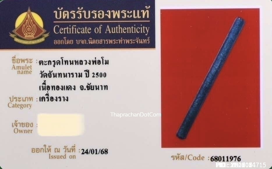ตะกรุดโทนหลวงพ่อโม วัดจันทนาราม จ.ชัยนาท ปี2500