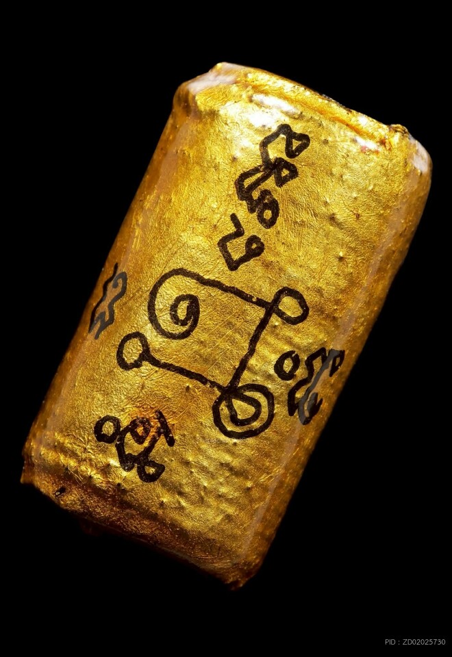 พระผงรุ่นแรก นั่งตั่งรับทรัพย์ ตะกรุดทองคำ+เงิน