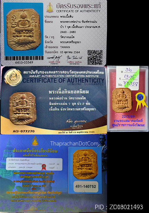 หลวงพ่อปาน ทรงเม่นบัว7จุดสวย2แชมป์งานใหญ่ของสมาคม+บัตรรับรอง