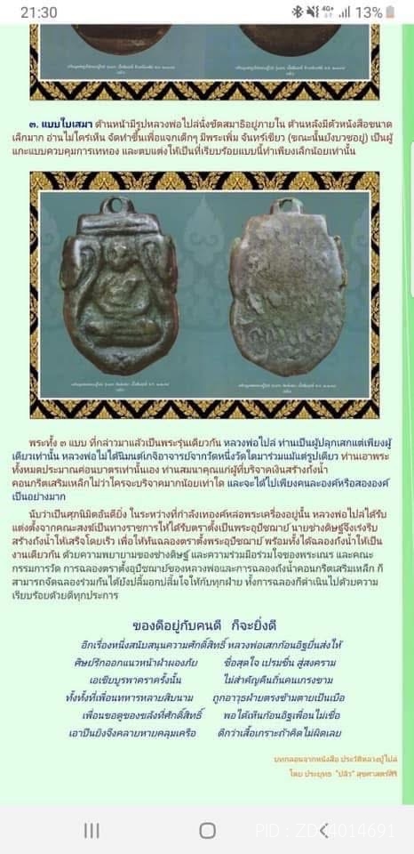 หลวงพ่อไปล่ พิมพ์ ใบเสมา