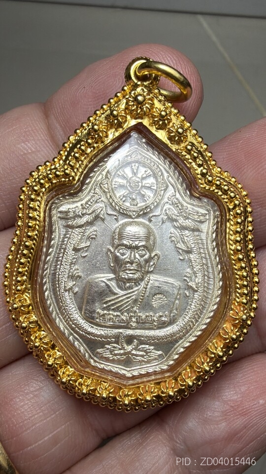 รูปหล่อเนื้อเงินไตรมาสรวยทันใจหลวงปู่หมุนวัดบ้านจาน