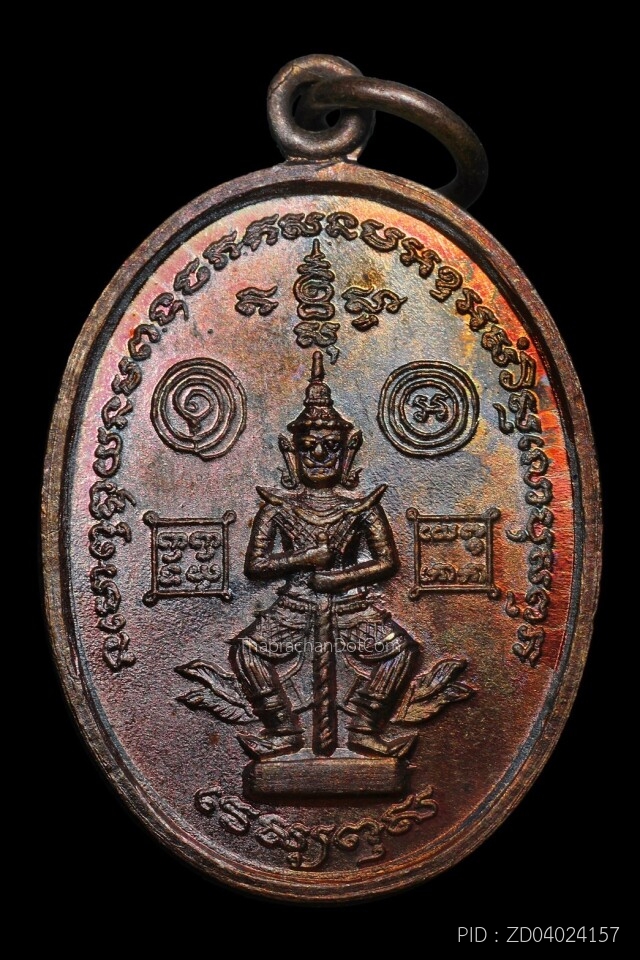 เหรียญท้าวเวสสุวรรณวัดเจดีย์สถาน ปี ๒๕๑๙ เนื้อทองแดงรมดำ โค๊