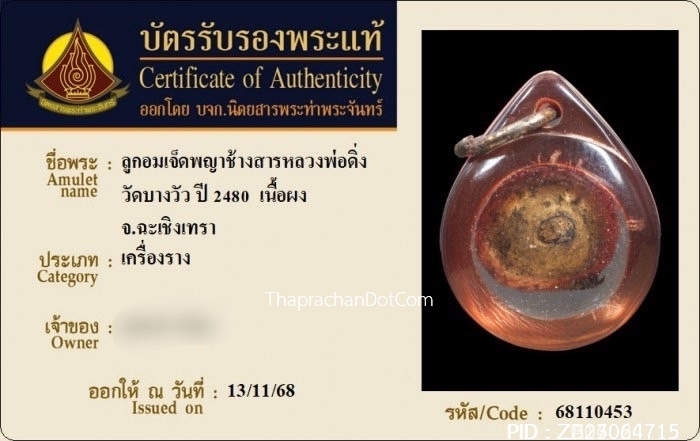 ล็อคเก็ตพระพุทธเจ้า หลวงพ่อผินะ วัดสนมลาว จ.สระบุรี