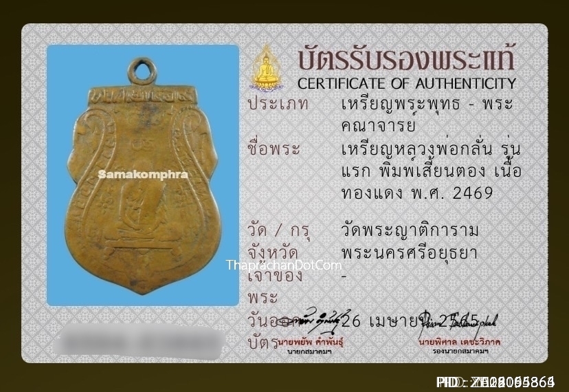 ตะกรุดหลวงพ่อกลั่น วัดพระญาติ จ.อยุธยา