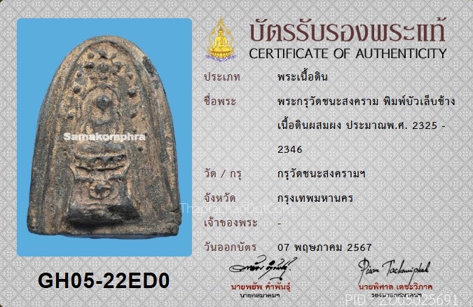 กรุวัดชนะสงคราม พิมพ์บัวเล็บช้าง+บัตรสมาคม