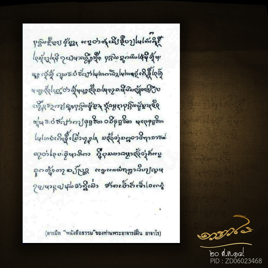 แผ่นจารมือ อาจารย์ฝั้น เนื้อทองคำ(หายากเป็นที่สุด)