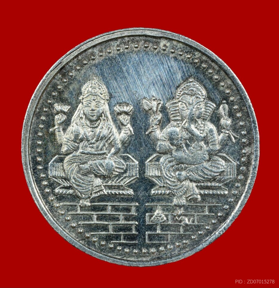 เหรียญกลมใหญ่ พระพิฆเณศพระแม่ลักษมี เนื้อเงินขัดมัน