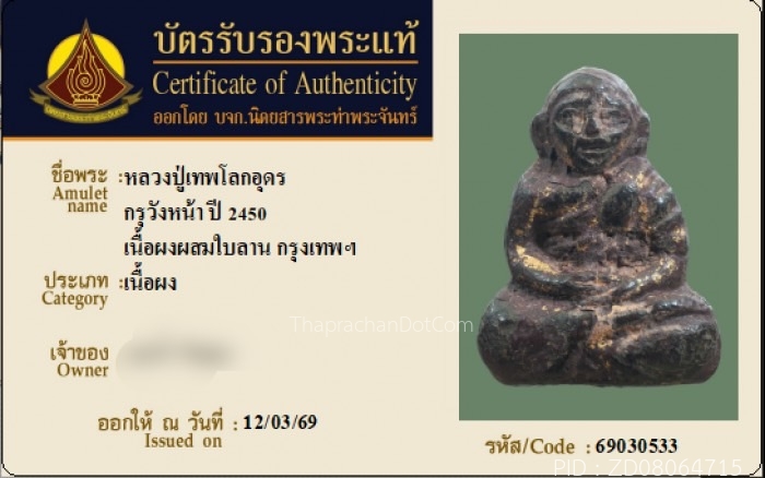 หลวงปู่เทพโลกอุดร พิมพ์อรหันต์สมาธิ กรุวังหน้า ปี2450