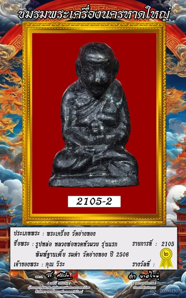 พระรูปหล่อ หลวงพ่อทวด หัวมวย วัดอ่างทอง ปี 2506