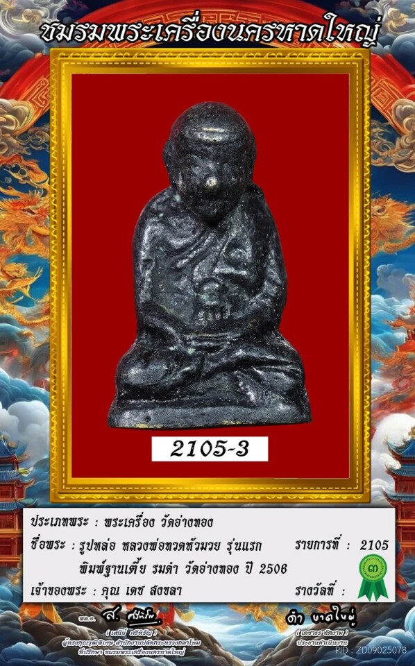 พระรูปหล่อ หลวงพ่อทวด หัวมวย วัดอ่างทอง ปี 2506