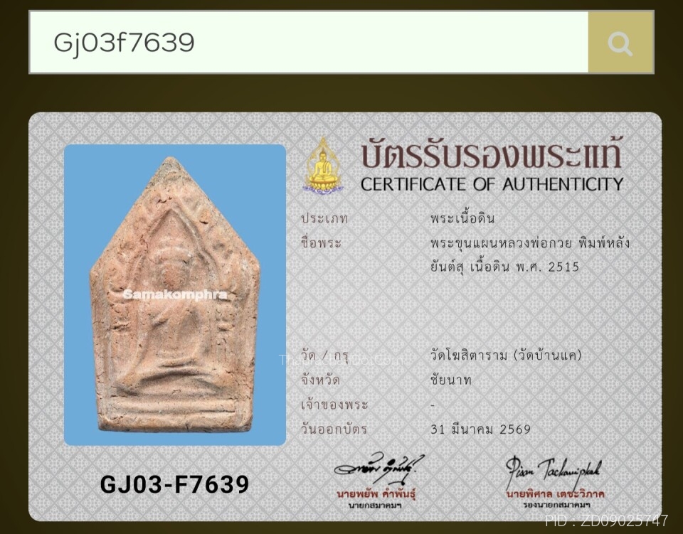 นางกวัก ลพ.อิ่ม วัดหัวเขา พร้อมบัตรสมาคม