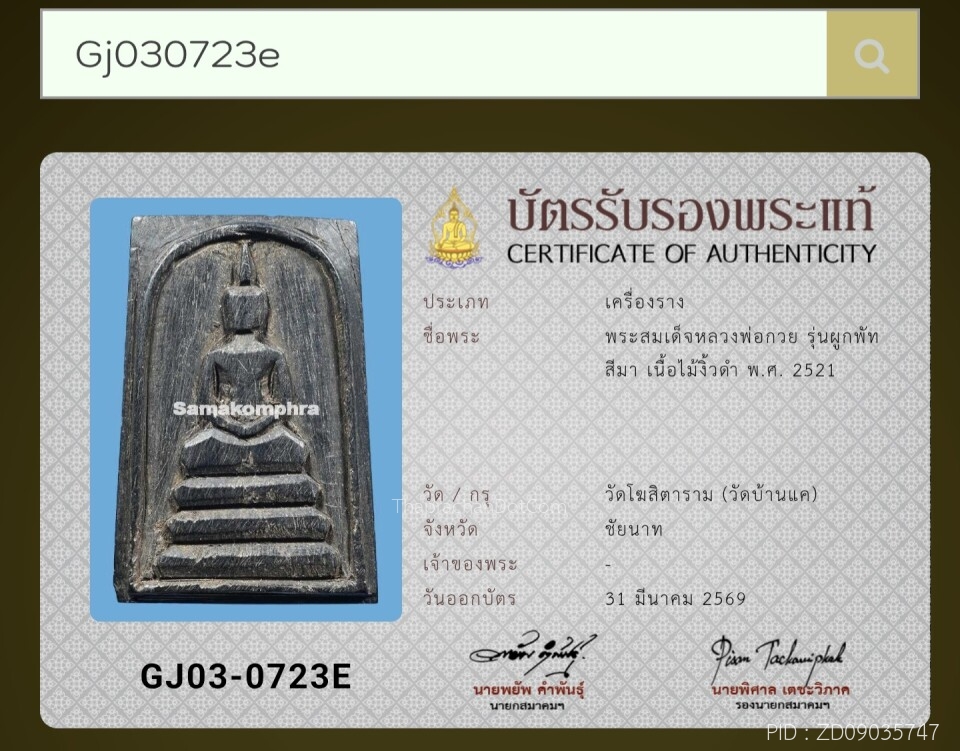 สมเด็จไม้งิ้วดำ ลพ.กวย วัดโฆสิตาราม