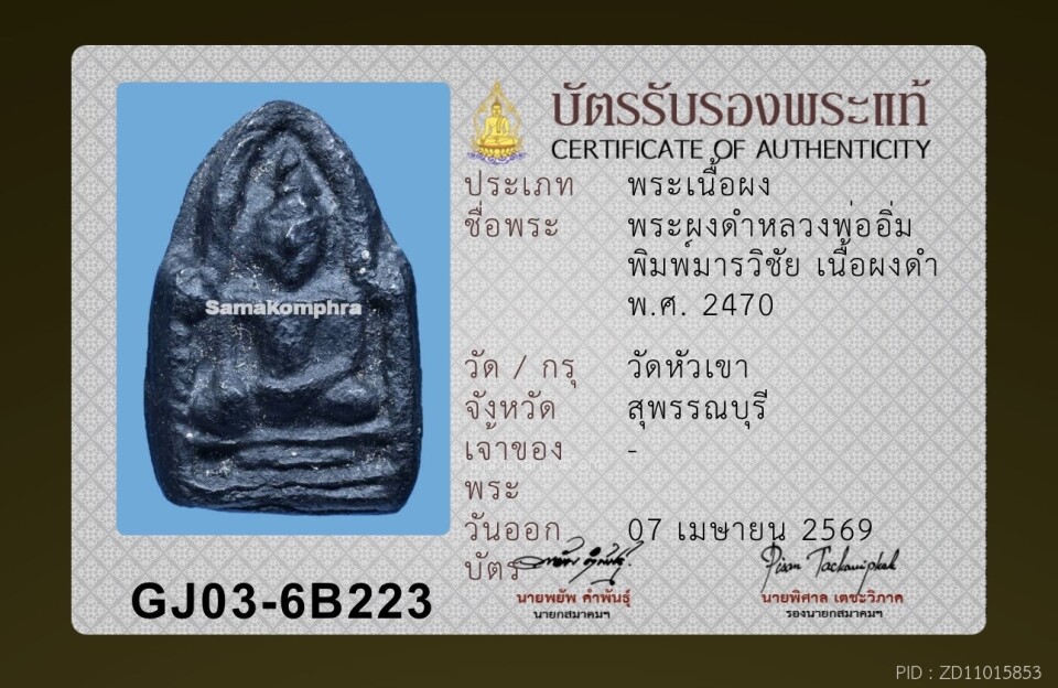 พระผงดำหลวงพ่ออิ่ม พิมพ์มารวิชัย ติดรางวัลที่1
