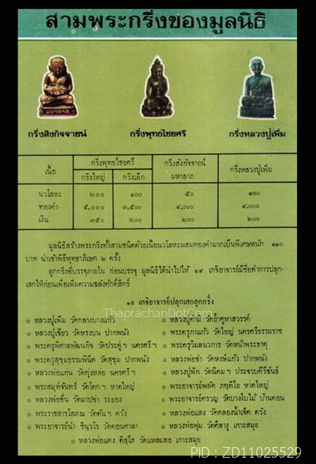 พระแก้วมรกต หลังเสือ พิมพ์เล็ก เจ้าคุณนรฯ วัดเทพศิริน ปี2513