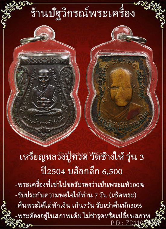 เหรียญหลวงปู่ทวดวัดช้างให้รุ่น3ปี2504บล็อกลึก