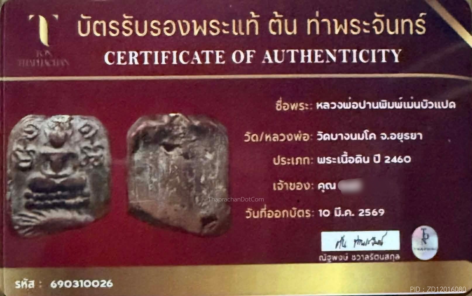 พระหลวงพ่อปาน วัดบางนมโค พิมพ์เม่นบัวแปด