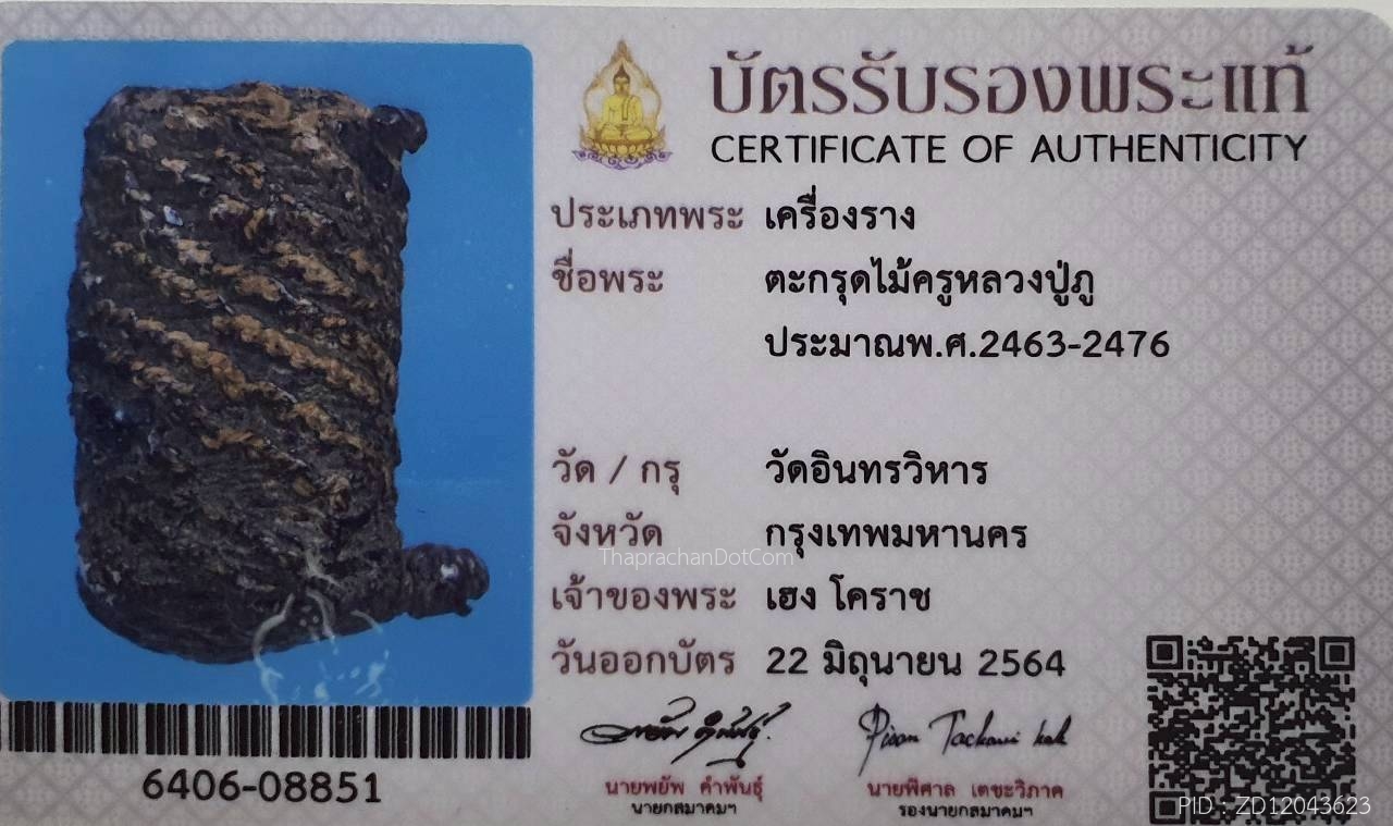 ตะกรุดไม้ครู หลวงปู่ภู วัดอินทรวิหาร ปี2476
