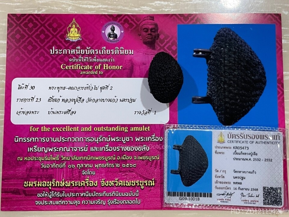 บัตรรับรองพระแท้ สมเด็จบางขุนพรหม 31 พิมพ์ใหญ่ ตรายางสามดวง