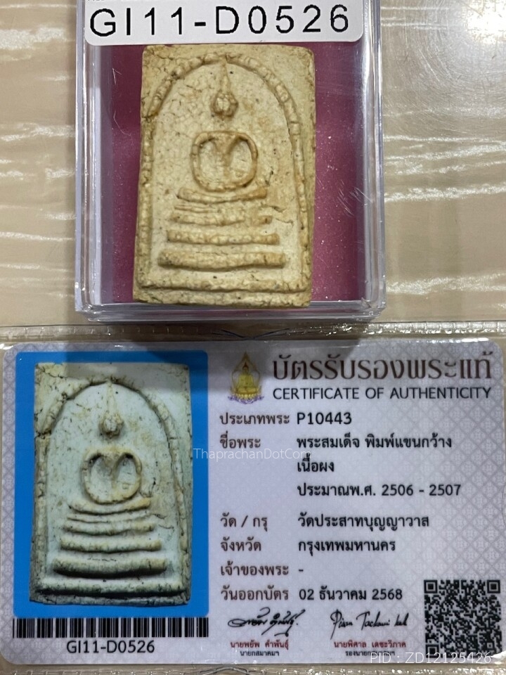 บัตรรับรองพระแท้ สมเด็จบางขุนพรหม 31 พิมพ์ใหญ่ ตรายางสามดวง